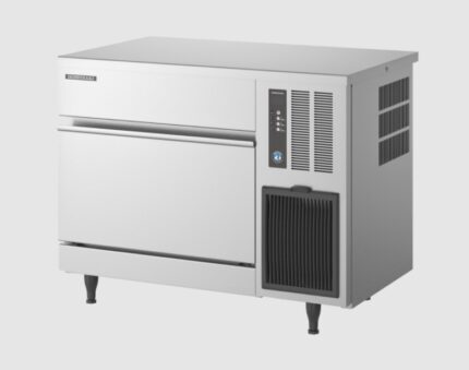 Productivity: up to 88 kg/day. Ice type: cube (1 piece – 17 g). Water cooling. Stainless steel body. Storage container capacity: 40 kg. Electromechanical control. Refrigerant R452a. Dimensions: 735x603x910/1060 (with legs) mm